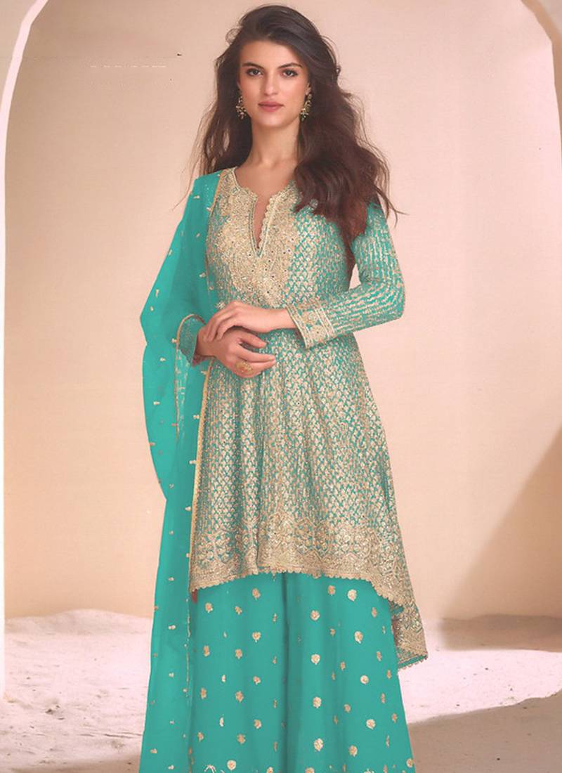 | Product Description | An Remarkable Turquoise Georgette Designer Suit Will Make You Look Quite Stylish And Graceful. The Brilliant Attire Creates A Dramatic Canvas With Incredible Embroidered Work. Comes With Matching Bottom And Georgette Dupatta. (Slight Variation In Color, Fabric & Work Is Possible. Model Images Are Only Representative.)Please Note That Accessories Are Only For Shooting Purposes.(This Product Will Be Free Size Stiched 42) |