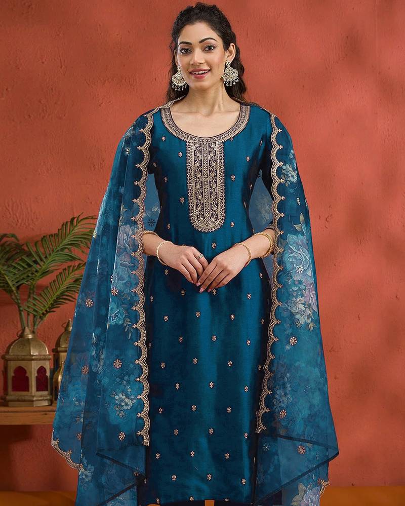 | Product Name | Morpeach Vichitra Silk Embroidered Work Straight Suit | |