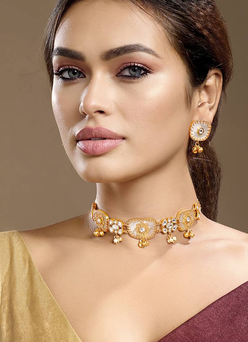 | Product Description | Elevate Your Festive Look With This Gold Plated Kundan Choker Necklace Set. Expertly Crafted With Intricate Detailing, It Reflects Timeless Tradition And Elegance. Perfect For Weddings, Celebrations, Or Cultural Events, This Stunning Choker Set Adds A Regal Touch And Graceful Sophistication To Any Ethnic Ensemble.
