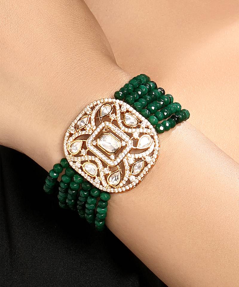 | Product Name | Gold Plated Kundan Green Stones Bracelet | |