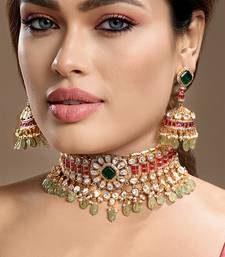| Product Name | Gold Plated Kundan Green Stones Choker Necklace Set | |