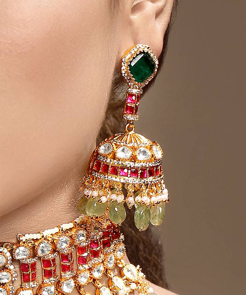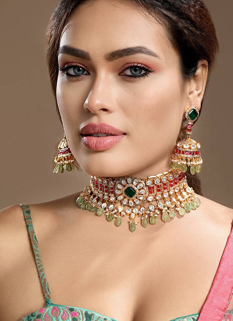 | Product Description | Enhance Your Festive Look With This Gold Plated Kundan Green Stones Choker Necklace Set. Designed With Intricate Craftsmanship And Vibrant Green Stones, It Offers A Perfect Blend Of Tradition And Elegance. Ideal For Weddings, Celebrations, Or Special Occasions, This Choker Set Adds Regal Charm And Refined Sophistication.