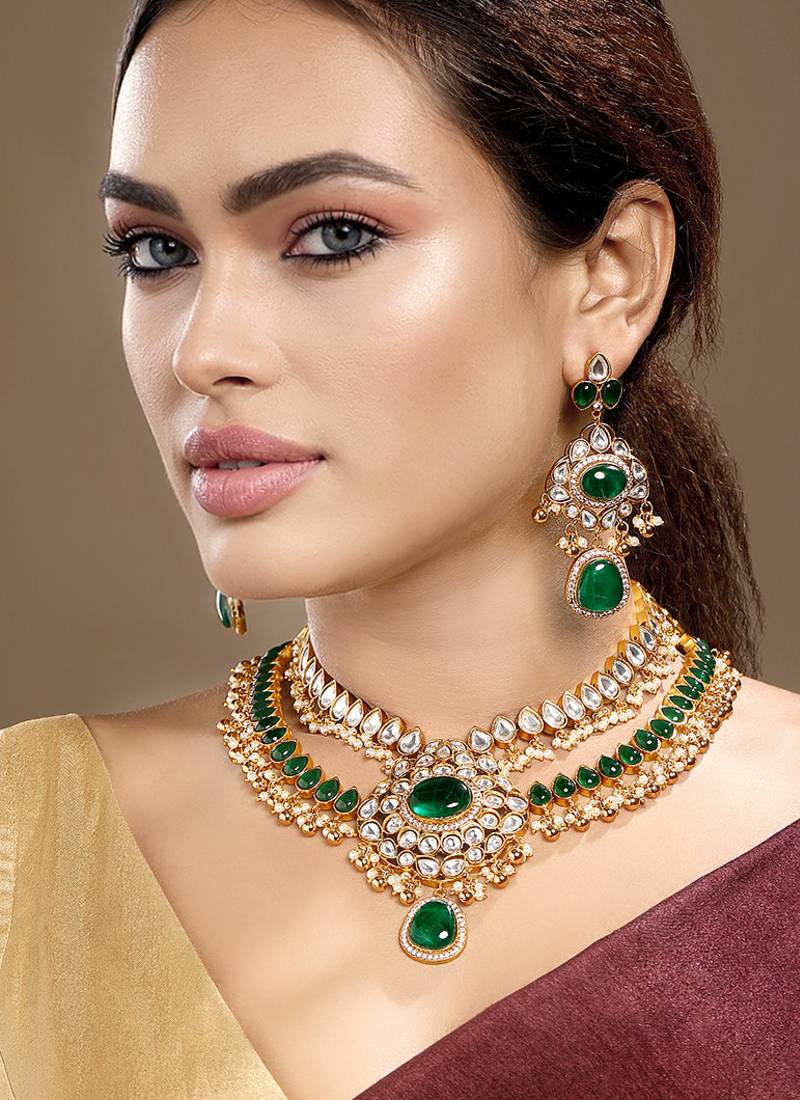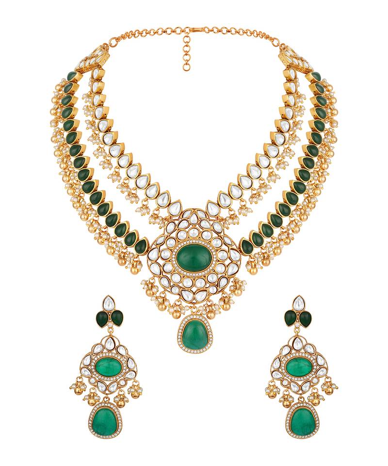 | Product Name | Gold Plated Kundan Green Stones Necklace Set | |