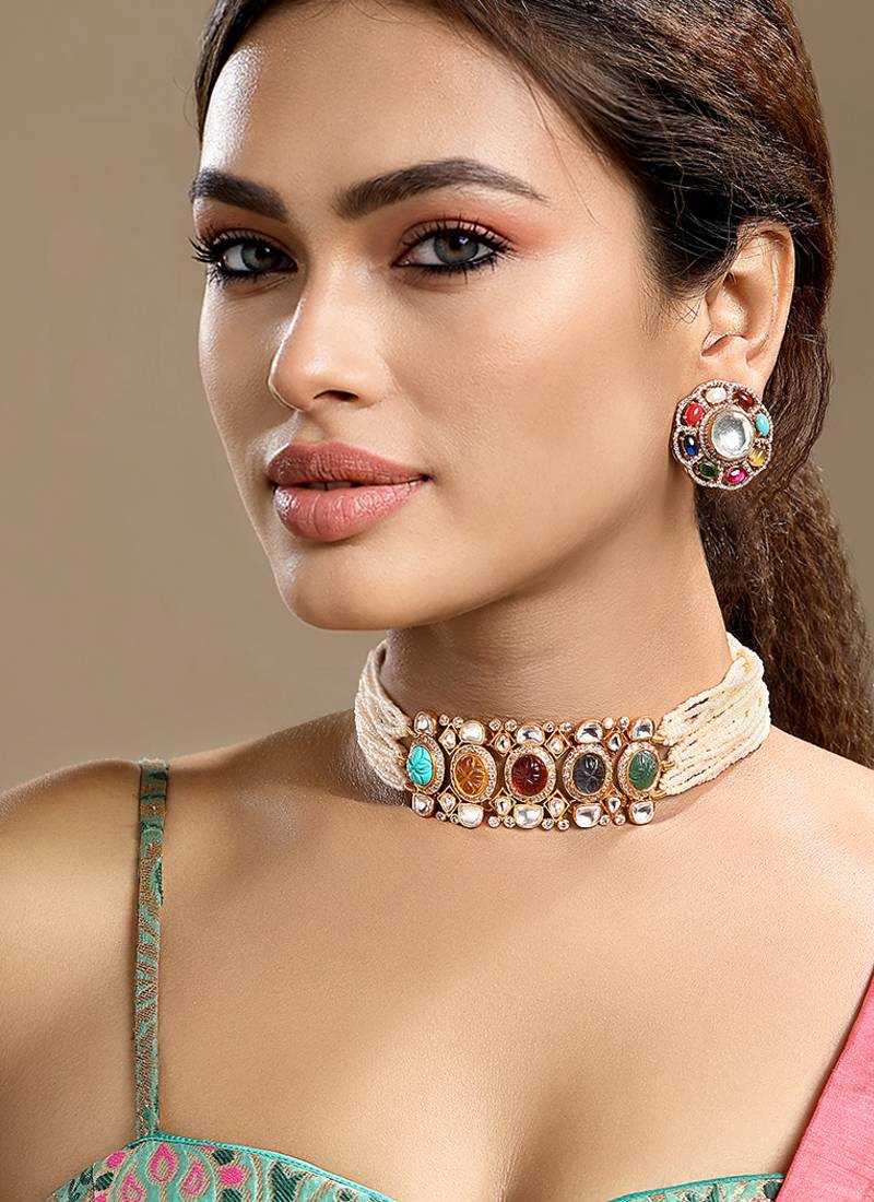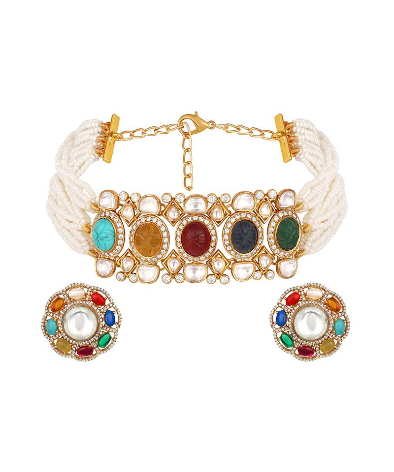 | Product Name | Gold Plated Kundan Multicolor Choker Necklace Set | |