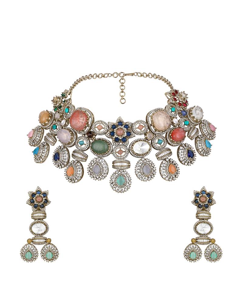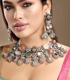 | Product Name | Gold Plated Kundan Multicolor Stones Necklace Set | |