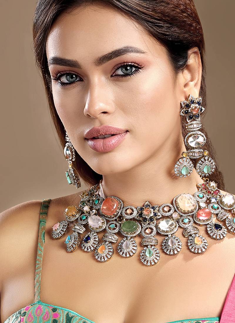 | Product Description | Elevate Your Elegance With This Gold Plated Kundan Multicolor Stones Necklace Set. Designed With Intricate Craftsmanship, It Features Radiant Multicolor Stones Set In Traditional Kundan Style. Perfect For Weddings, Festive Occasions, Or Special Celebrations, This Timeless Set Adds Regal Charm And Graceful Sophistication To Any Ethnic Ensemble.