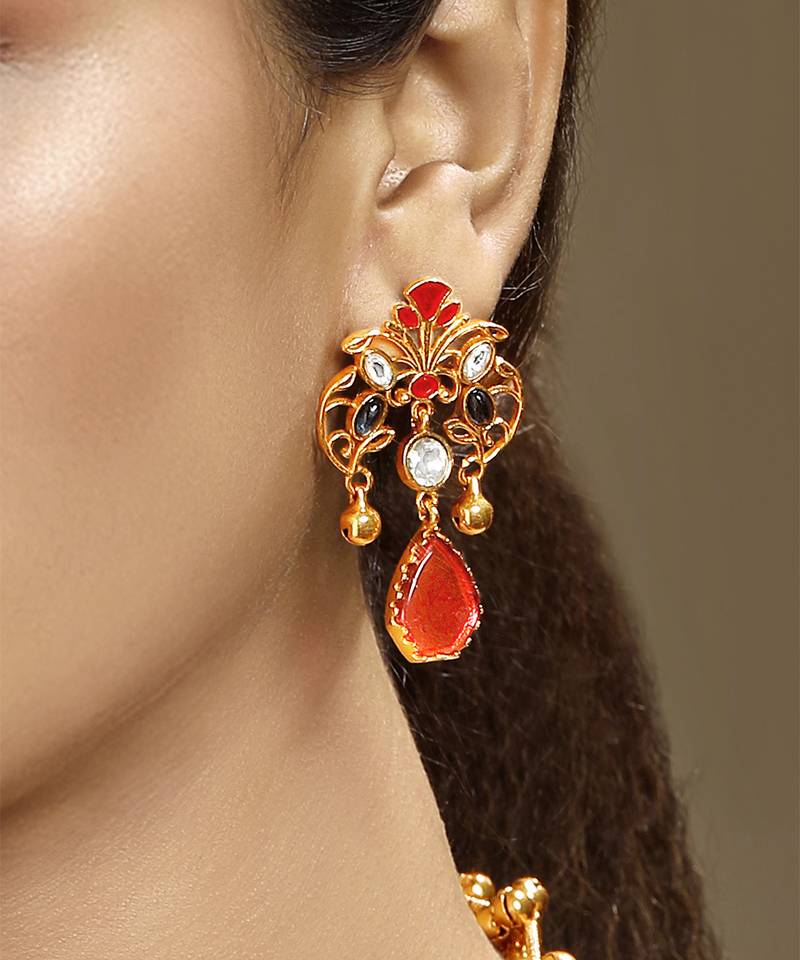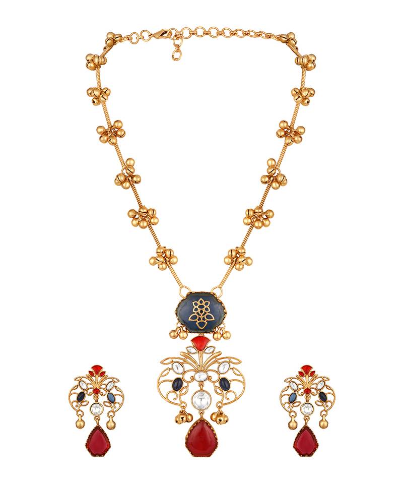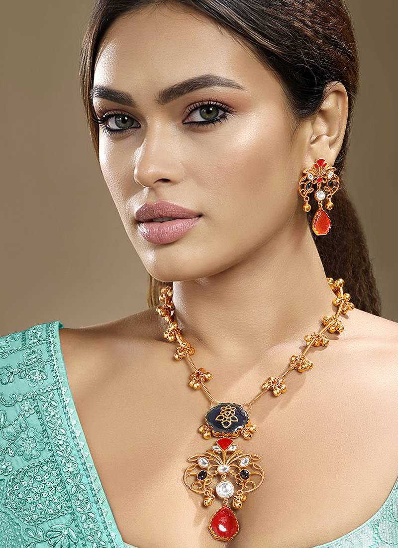 | Product Name | Gold Plated Kundan Red Stones Necklace Set | |