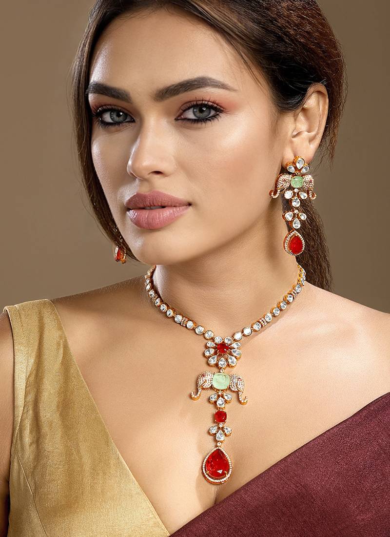 | Product Name | Gold Plated Kundan Red Stones Necklace Set | |