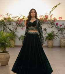 Green velvet viscose golden thread lehenga set with choli and dupatta