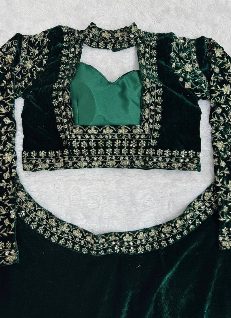 | Product Name | Green Velvet Viscose Golden Thread Lehenga Set With Choli And Dupatta | |