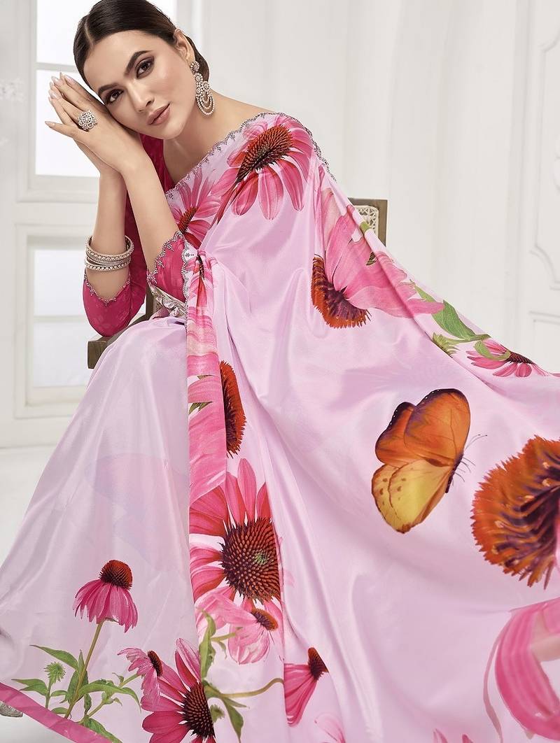 | Product Name | Baby Pink Premium Printed Saree With Blouse Or Saraowski Border | |