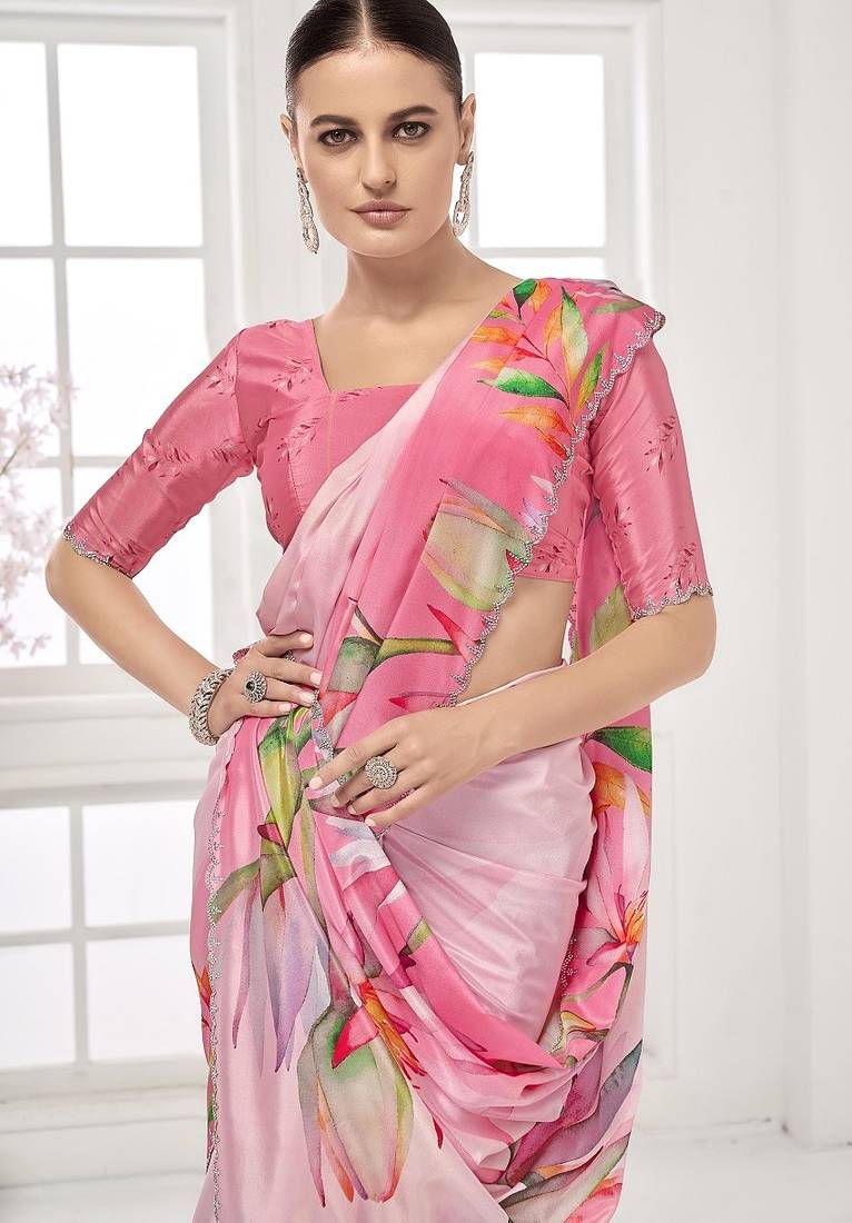 | Product Name | Baby Pink Premium Printed Saree With Blouse Or Saraowski Border | |