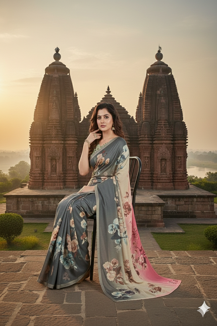 | Product Name | Grey Premium Printed Saree With Blouse | |