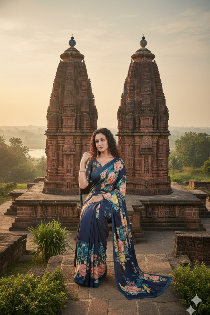 | Product Name | Blue Premium Printed Saree With Blouse | |