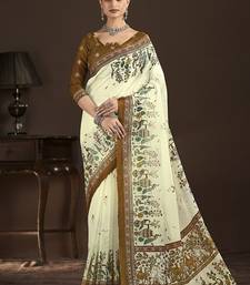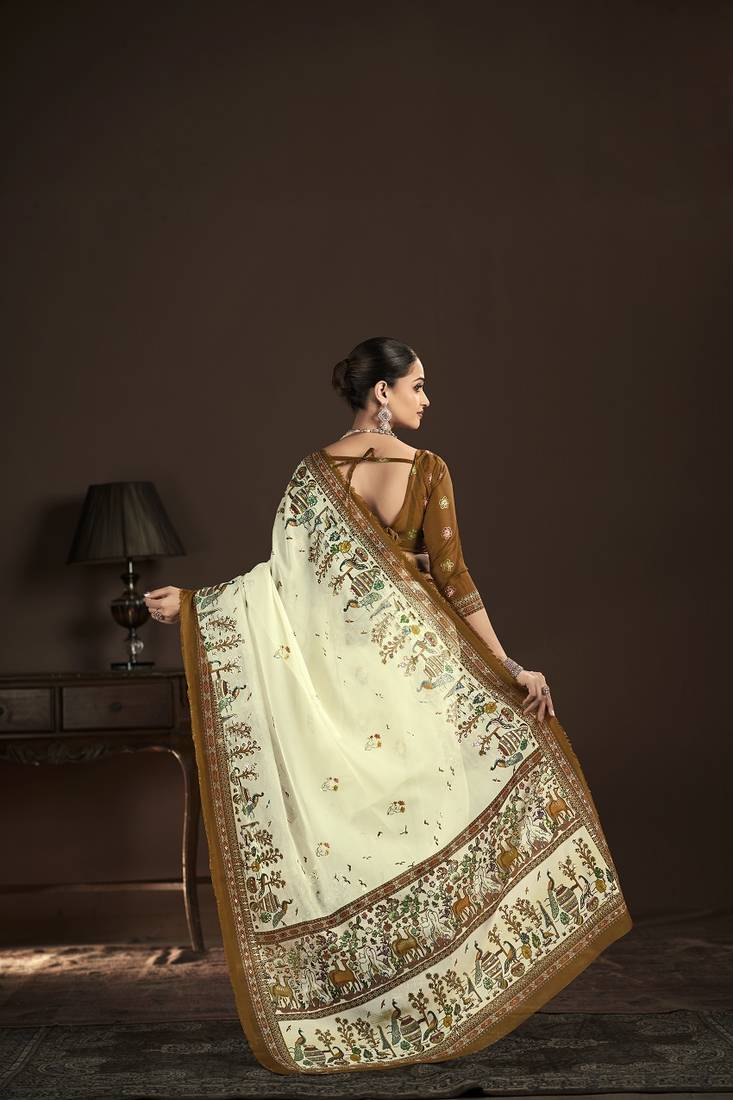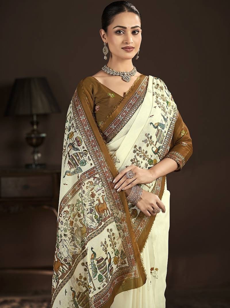 | Product Name | Cream Premium Position Foil Digitally Printed Saree With Blouse | |