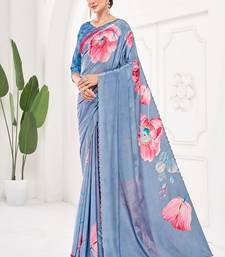 | • | Saree | : | Color- Blue / Fabric- Faux Crepe |