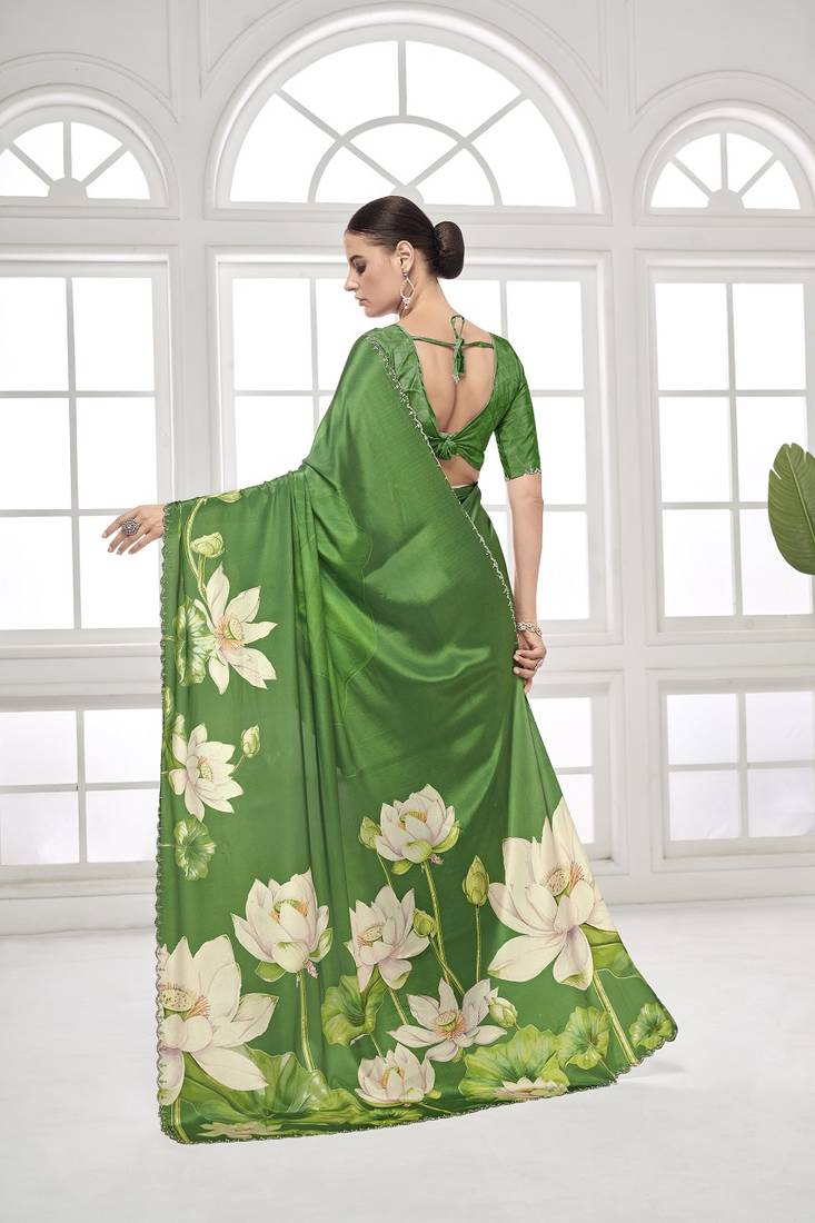 | Product Name | Green Premium Printed Saree With Blouse Or Saraowski Border | |