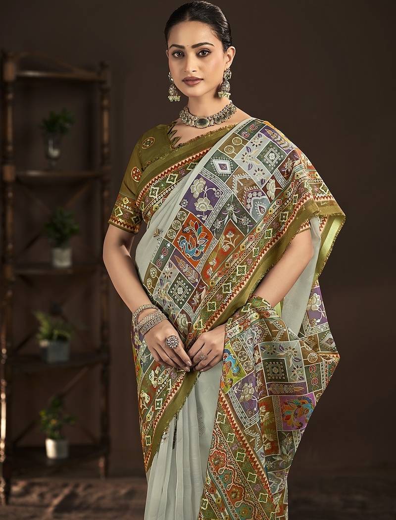 | Product Name | Grey Premium Position Foil Digitally Printed Saree With Blouse | |