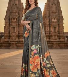 Grey premium printed saree with blouse