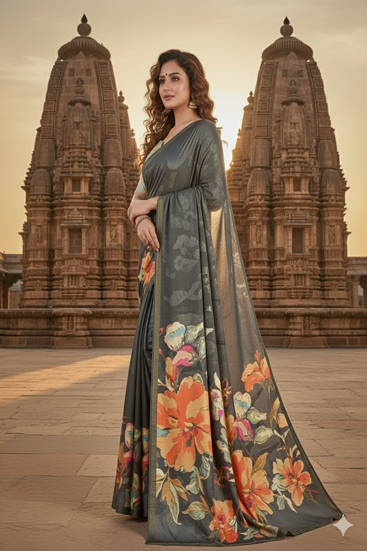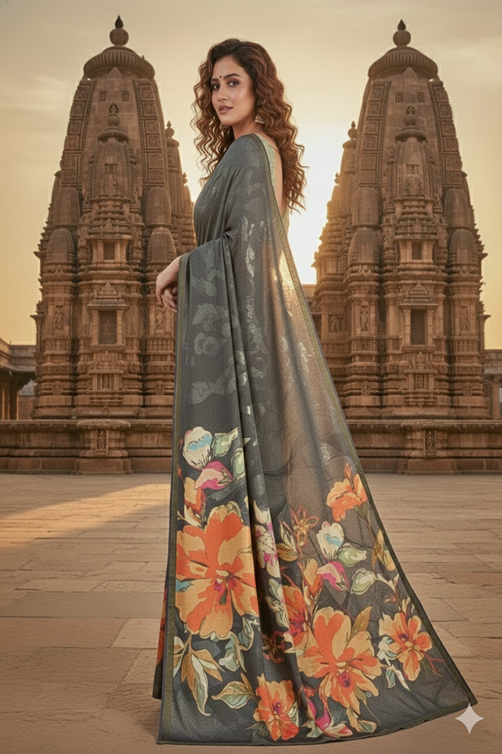 | Product Name | Grey Premium Printed Saree With Blouse | |