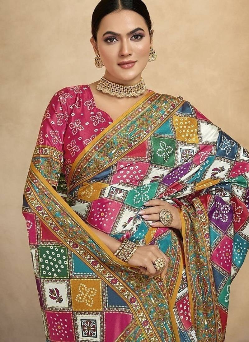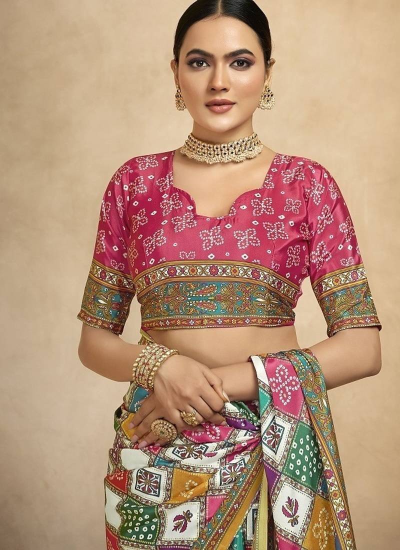 Multicolor digital foil premium printed saree with blouse