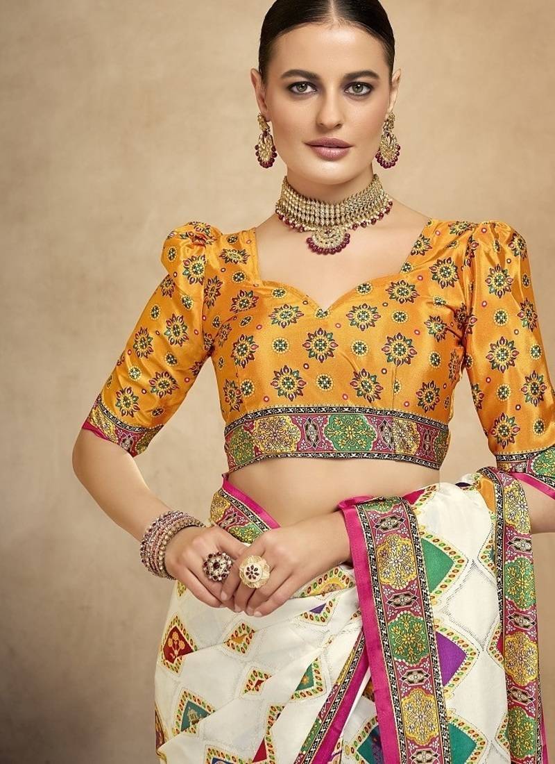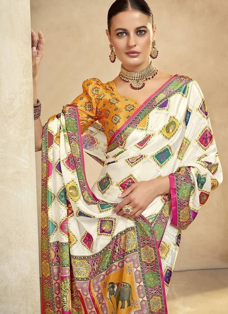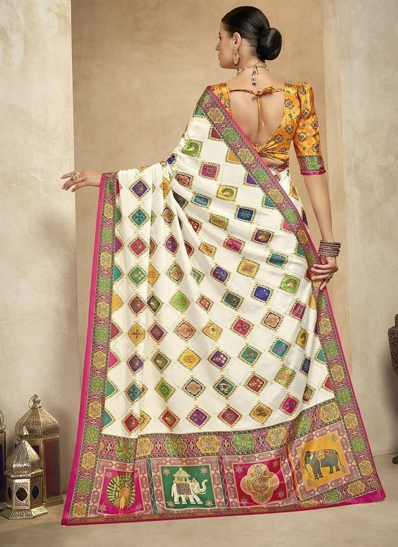 Multicolor digital foil premium printed saree with blouse