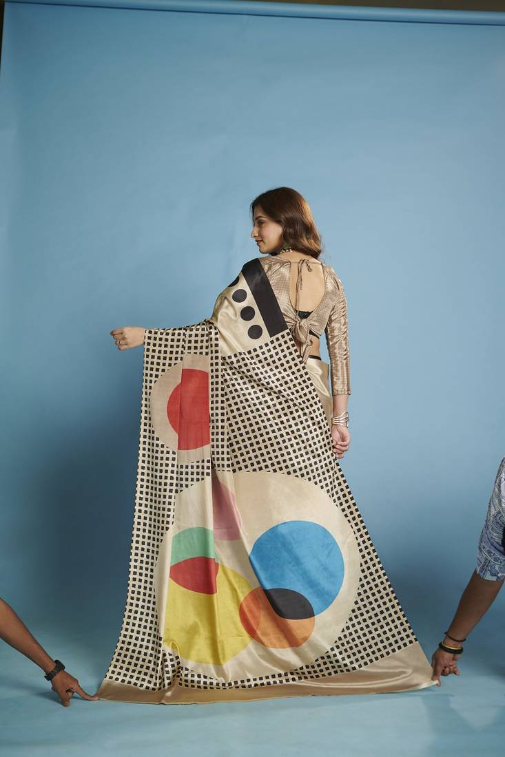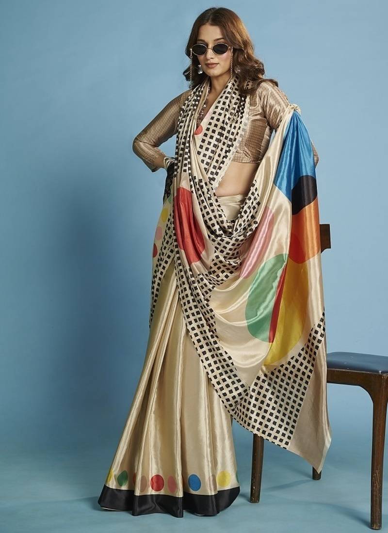 Beige premium printed saree with blouse