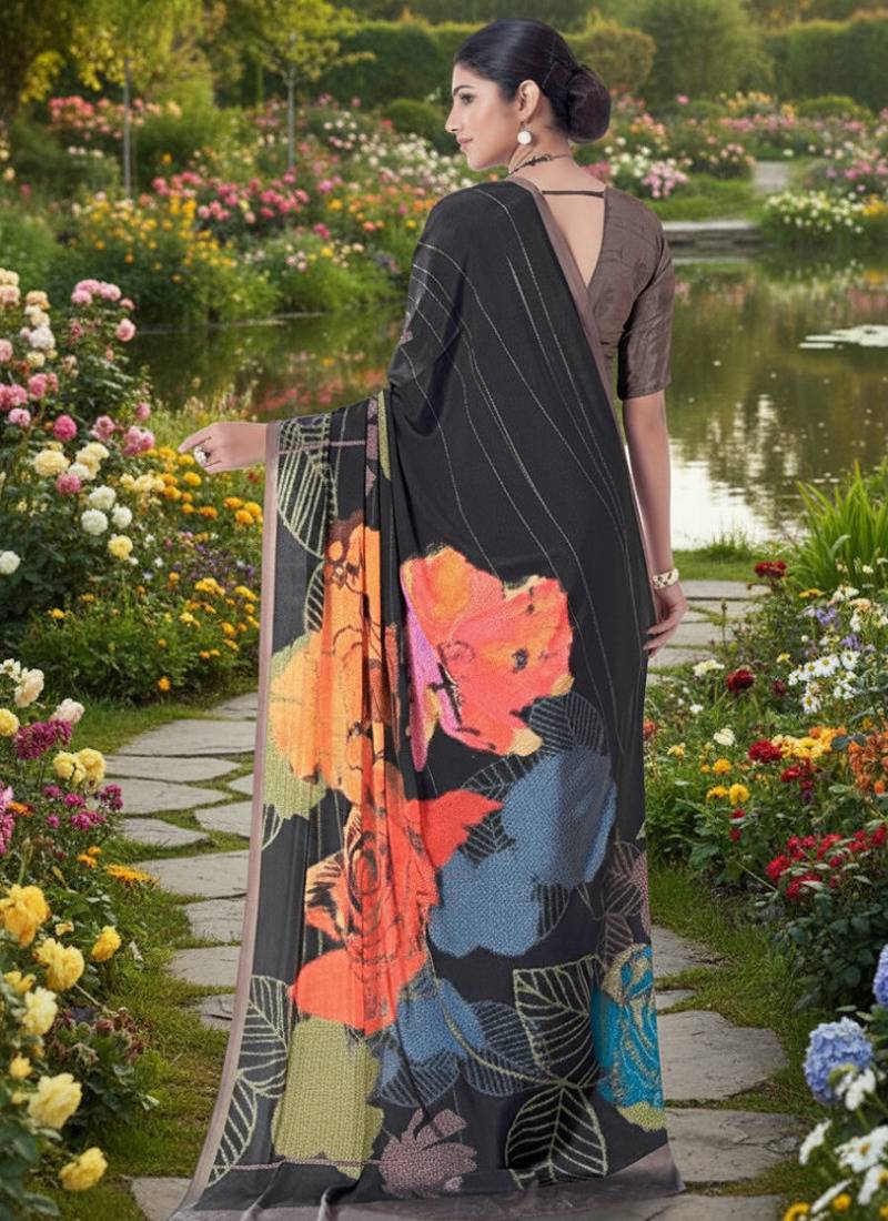 | • | Saree | : | Color- Multicolor / Fabric- Faux Crepe |