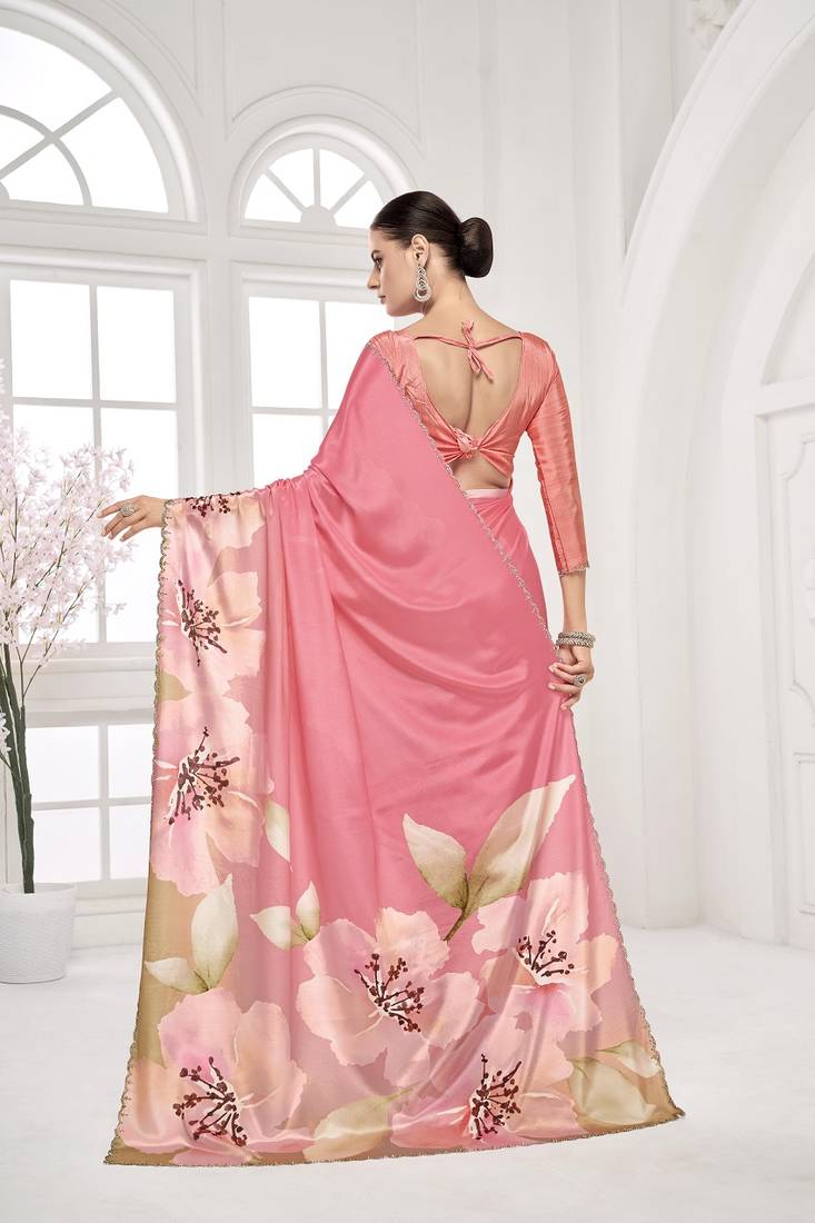 | Product Name | Pink Premium Printed Saree With Blouse Or Saraowski Border | |