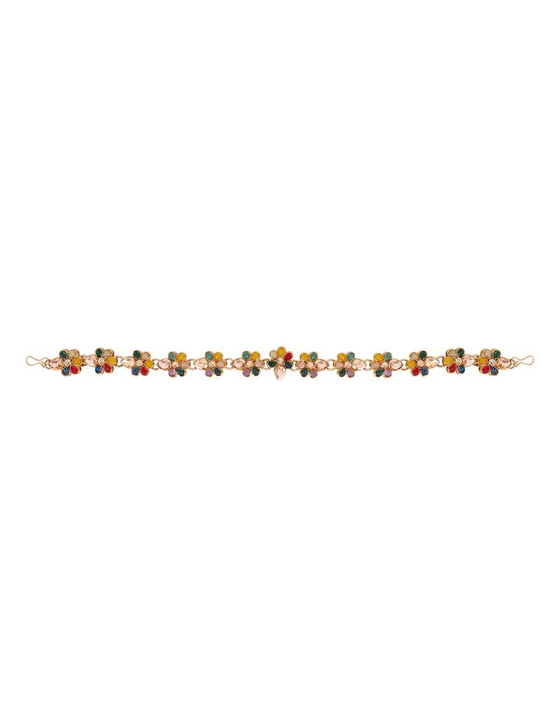 Gold plated handcrafted multicolor floral stone hair sheeshpatti for women (t2208mul)