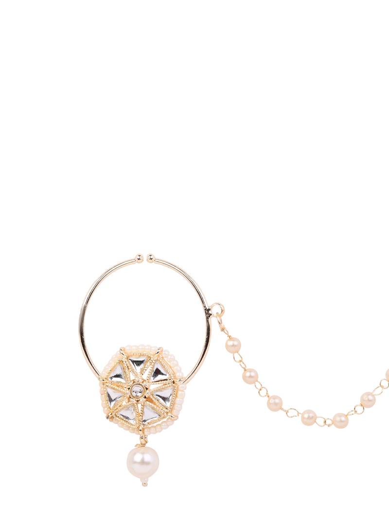 | Product Name | Gold Plated Traditional Bridal Nath/Nose Ring Without Piercing With Pearl Chain & Stone For Women (Nl184w) | |