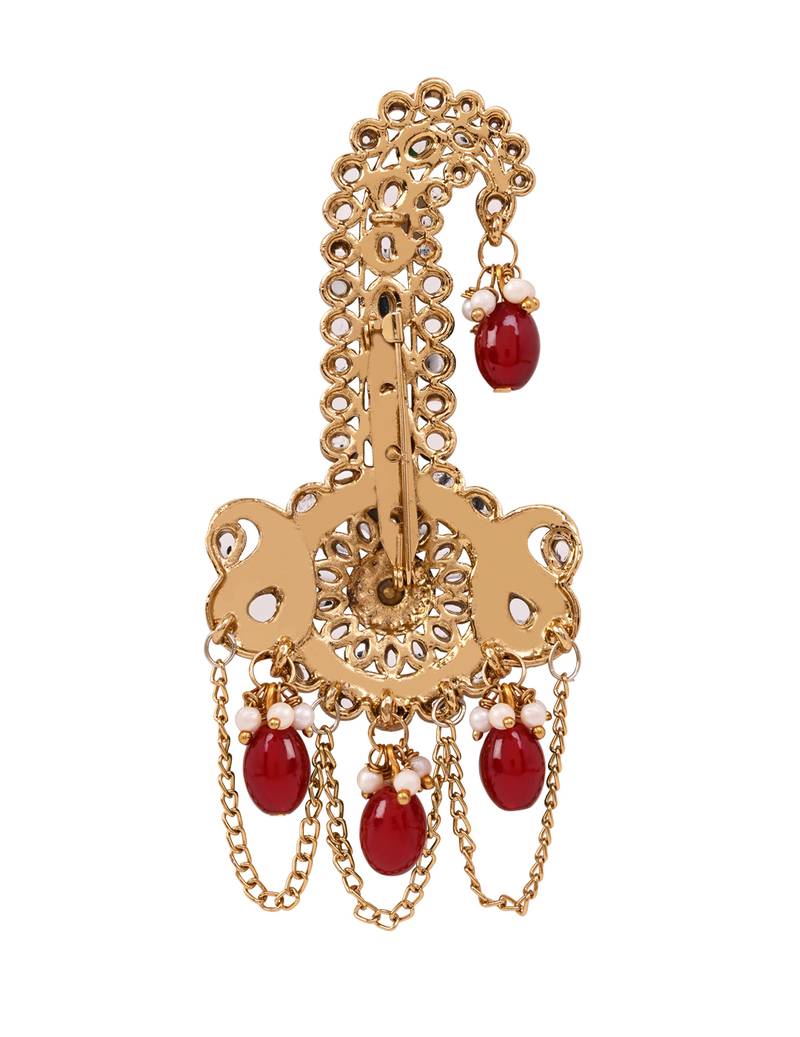 | Product Name | Gold Plated Traditional Stone Pearl Drop Safa Kalangi Brooch For Groom/Men/Dulha Pagadi (Sm97m) | |