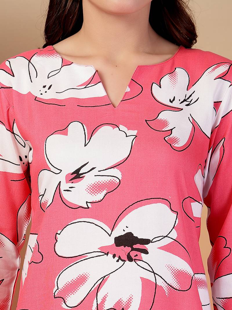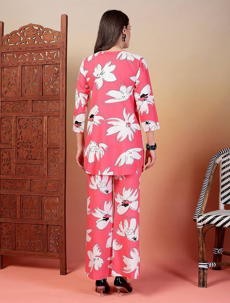 | Product Name | Rayon Pink Floral Print Co Ord Set | |