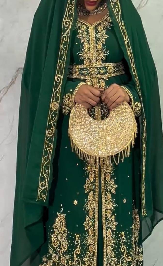 Green handcrafted zari work stitched georgette kaftan party dress