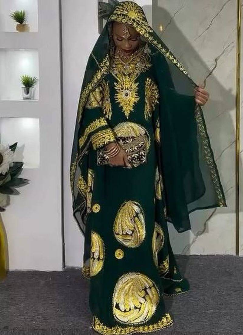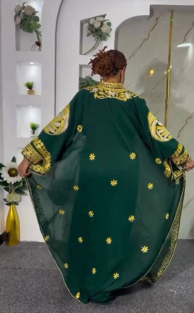 | Product Description | Royal Green Embroidered Abaya With Detailed Aari Embroidered Dress For Women's |