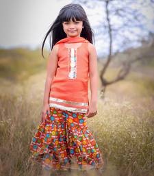 | Product Description | Orange Printed Short Kurta With Flower Print Sharara And Dupatta. |