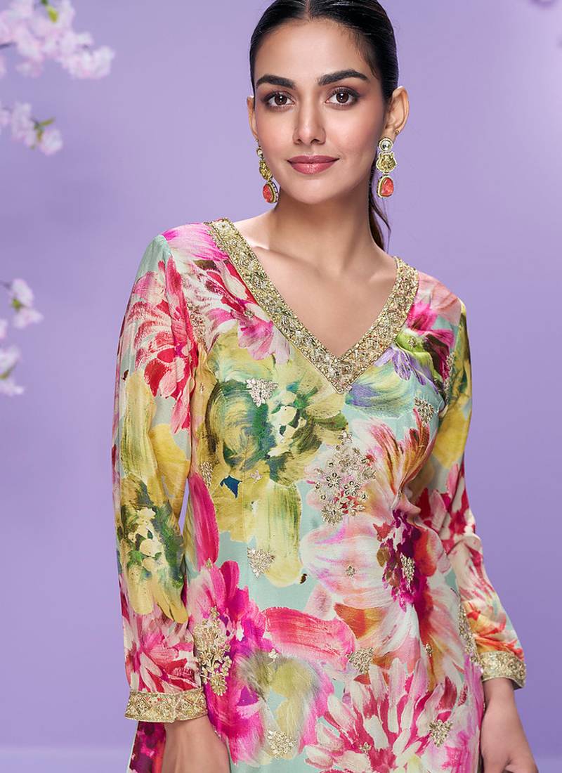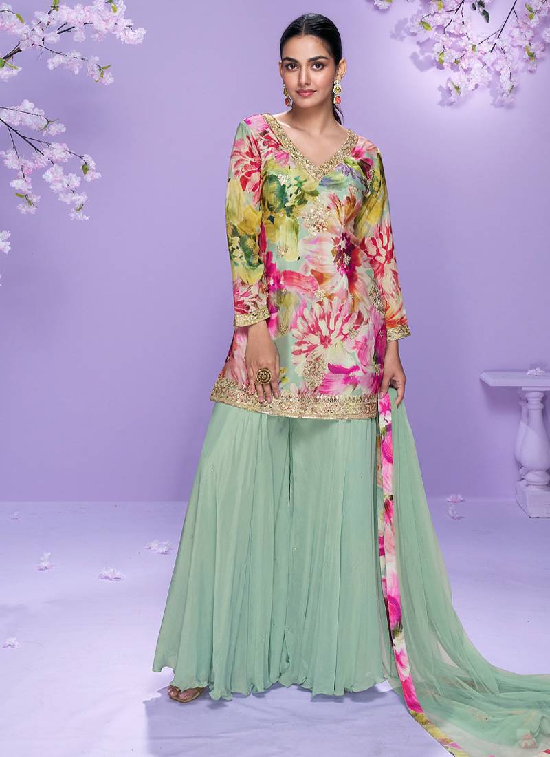 | Product Name | Light Green Floral Print Chiffon Salwar Kameez | |