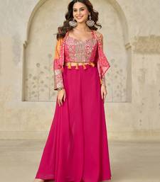 Red printed chiffon salwar-kameez semi stitched