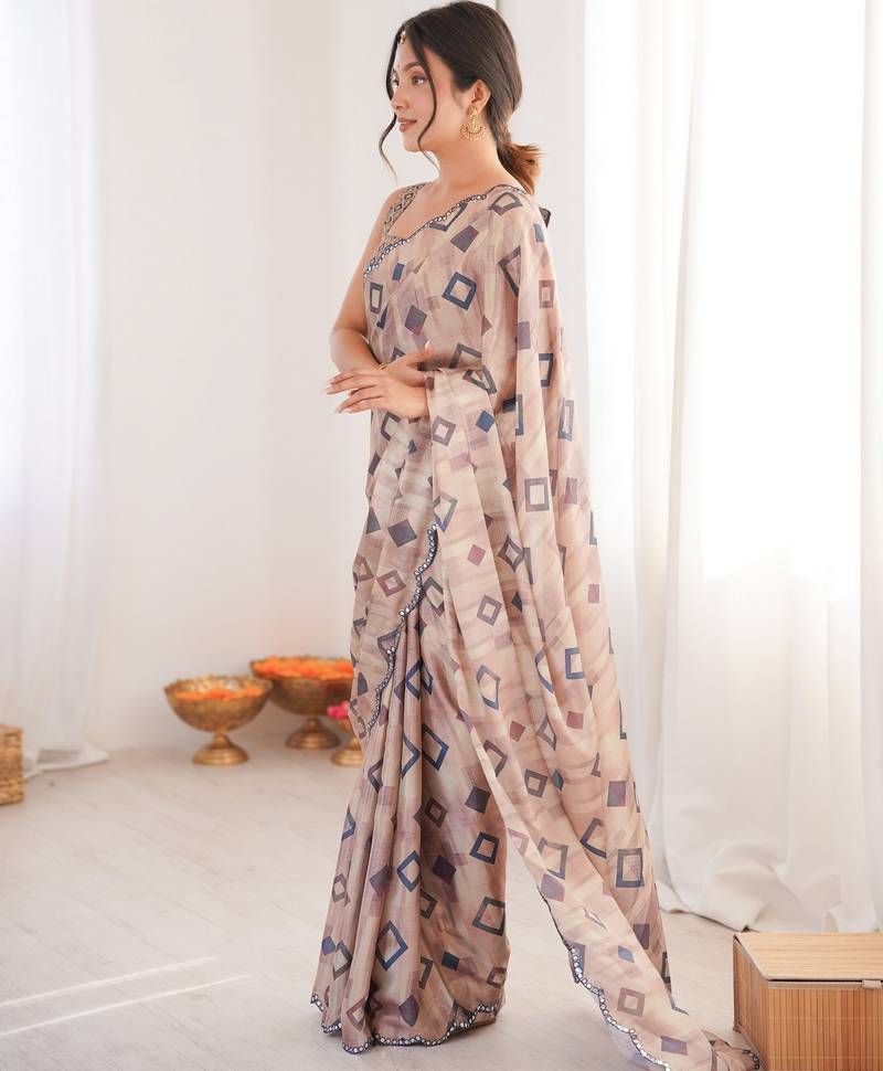 | Product Name | Brown Color Chinon Fabric Digital Print Smart Ethnic Saree | |