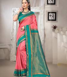 Dark peach color art silk blended woven designer ethnic partywear saree