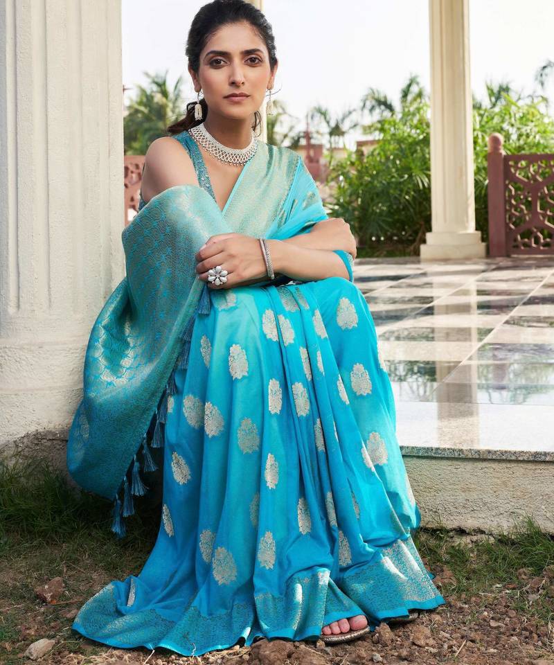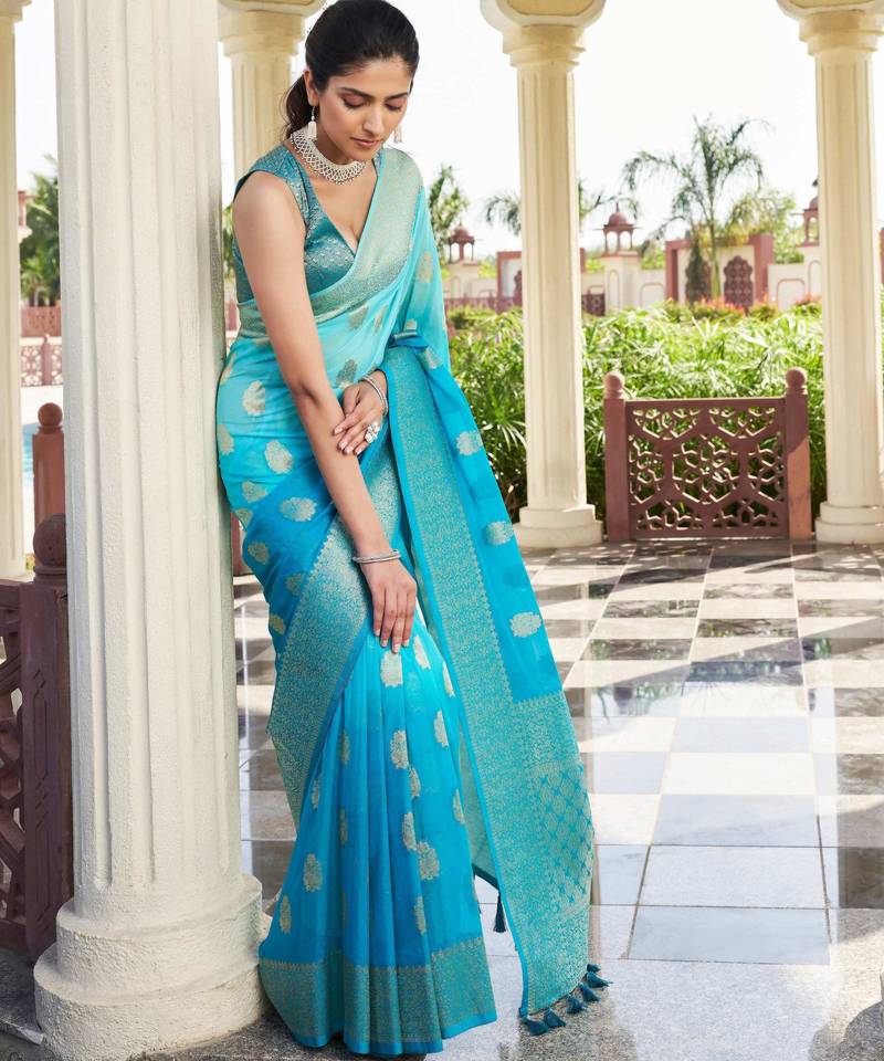| Product Name | Firozi Color Georgette Fabric Heavy Wevon Designer Work Graceful Saree | |