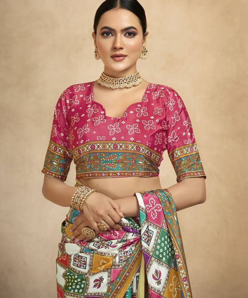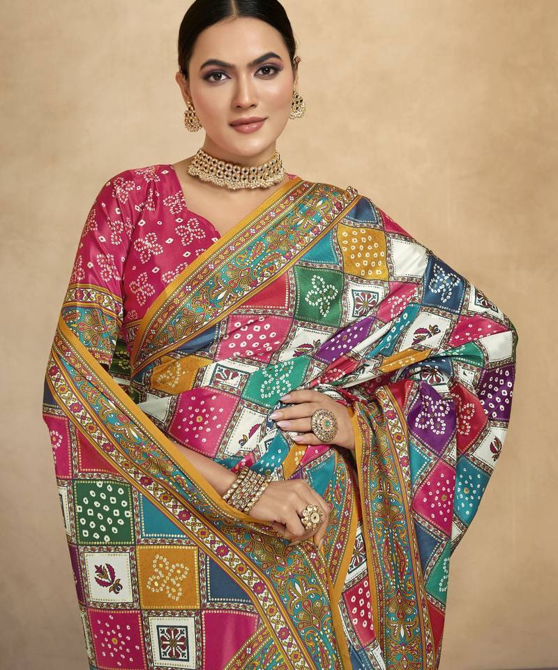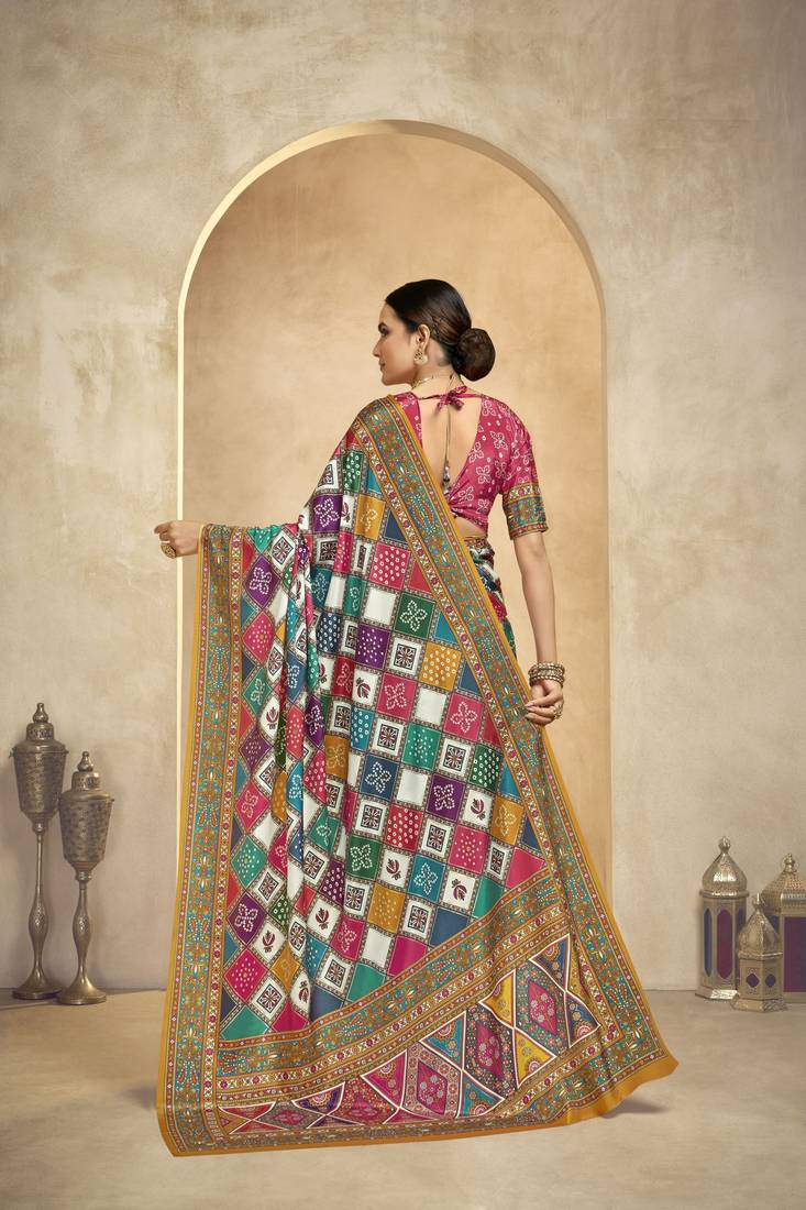 | Product Name | Graceful Ethnic Multy Color Bollywood Style Crepe Silk Blend Designer Digital Foil Printed Saree | |