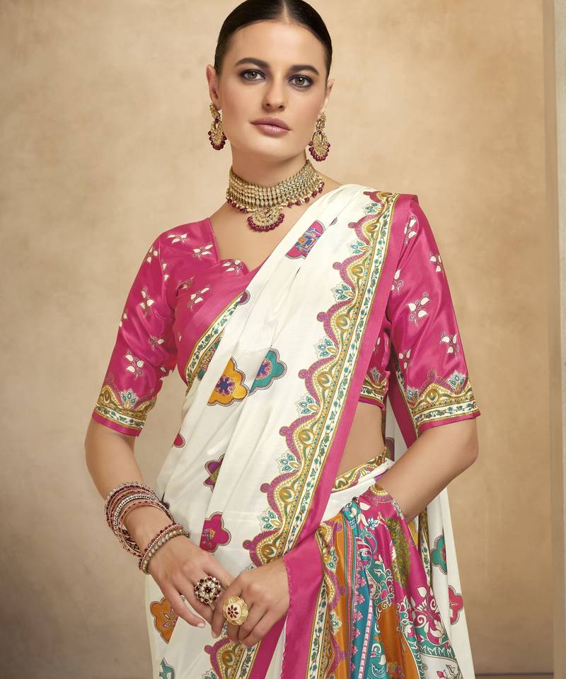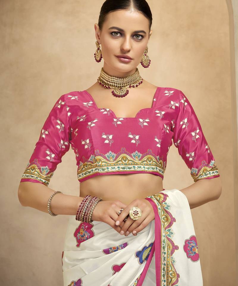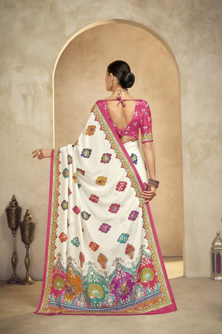 | Product Name | Graceful Ethnic Off White Color Bollywood Style Crepe Silk Blend Designer Digital Foil Printed Saree | |