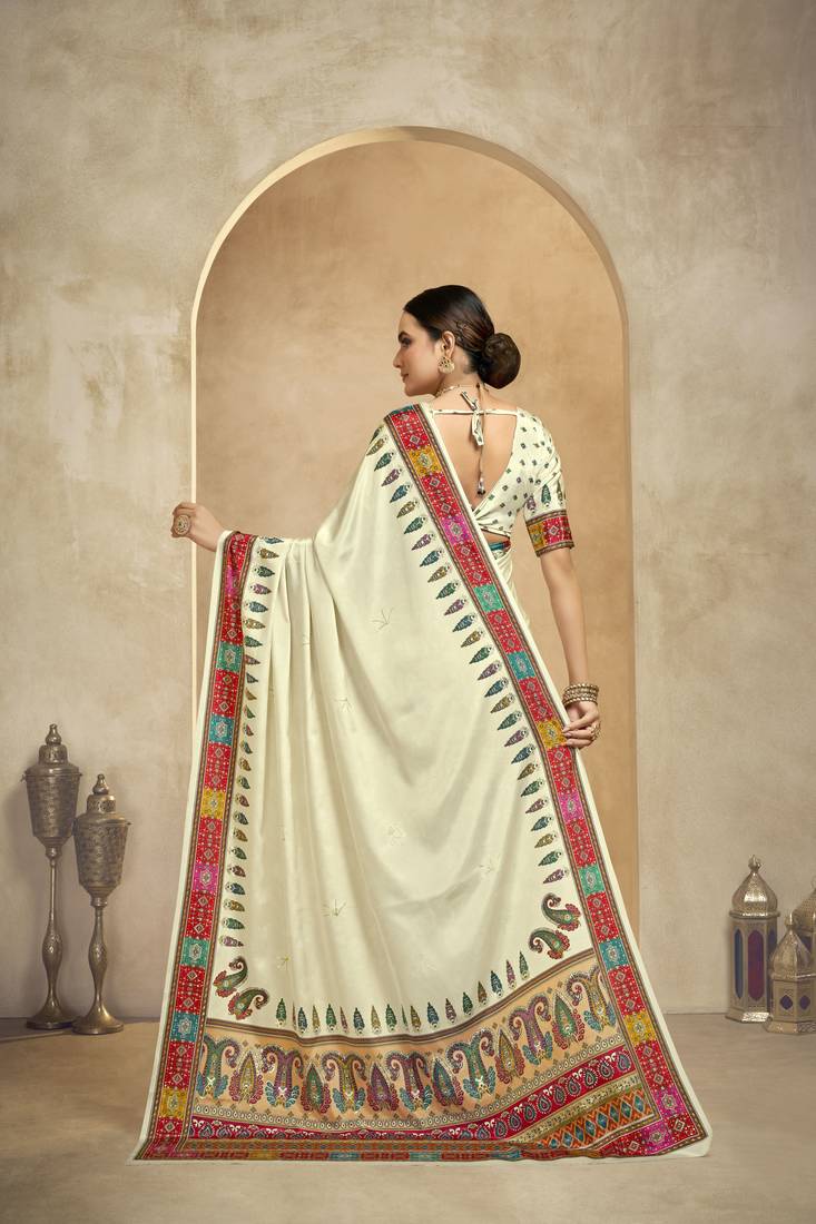 | Product Name | Graceful Ethnic Off White Color Bollywood Style Crepe Silk Blend Designer Digital Foil Printed Saree | |