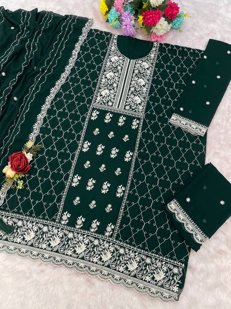 Green georgette embroidered palazzo suit semi stitched