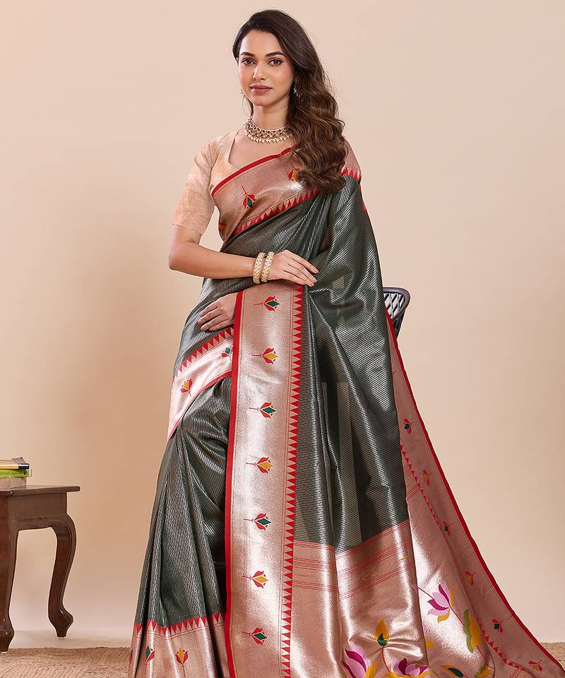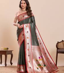 | Product Description | Garb This Party Wear Saree Paired With Blouse.This Saree And Blouse Are Soft Silk Fabric With Woven Paithani Meenakari Designer. Buy This Pretty Saree Now. |