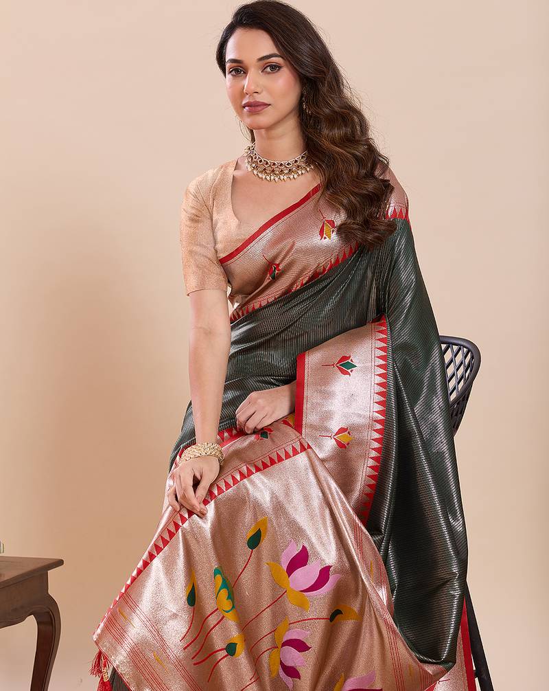 | Product Name | Green Color Soft Silk Blend Fabric Woven Jari Designer Partywear Saree | |