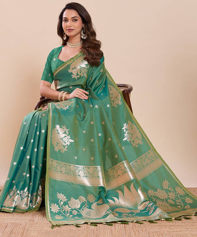 Green color soft art silk fabric woven jari designer partywear saree