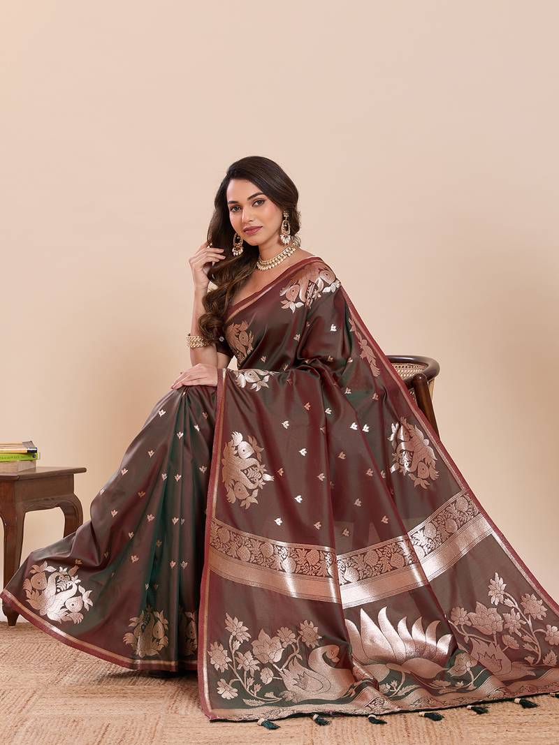 Mahendi color soft art silk fabric woven jari designer partywear saree