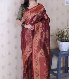 Maroon color soft silk blend woven jari designer ethnic partywear saree